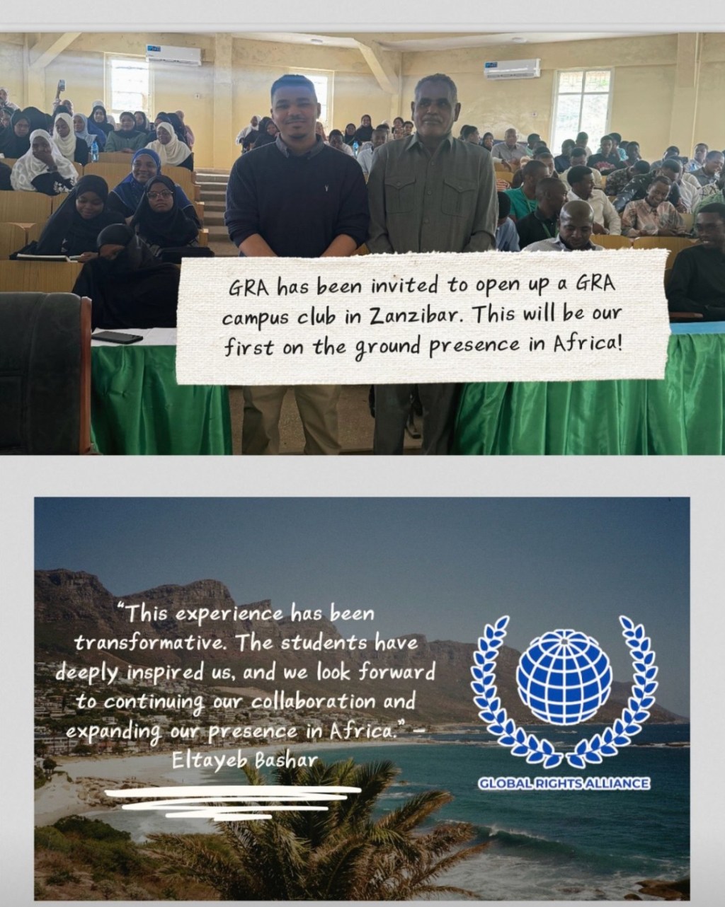 Global Rights Alliance is proud to share that faculty and students at Zanzibar University have invited us to launch a GRA Campus Club, marking our first on the ground presence in Africa 🌍🌱